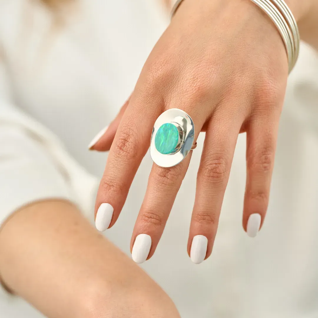 Este elegante Anillo de Plata 925 con Incrustación de Ópalo es la combinación perfecta de estilo y elegancia. El ópalo, conocido por sus propiedades curativas, brinda un toque de color y energía positiva a tu look. Ideal para lucir en cualquier ocasión y destacar tu belleza natural.